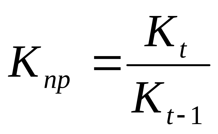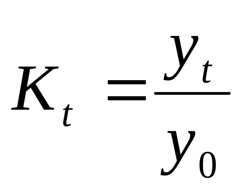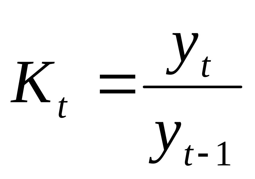 2. Темп зростання К, розраховується як відношення рівнів і виражається у відносних числах ( індекси, проценти)