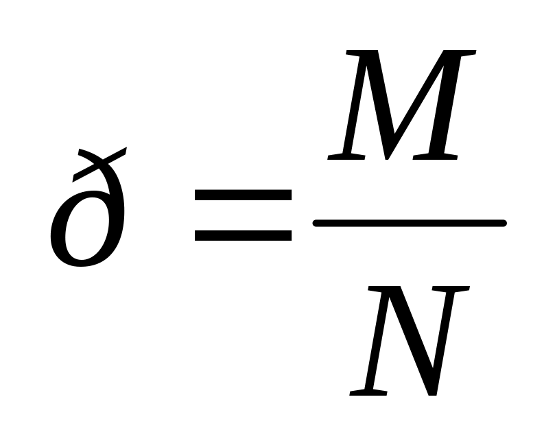 г) частка ознаки одиниць генеральної сукупності р, тобто частка одиниць М, яка володіє даними значеннями ознаки в загальному обсягу N одиниць генеральної сукупності: