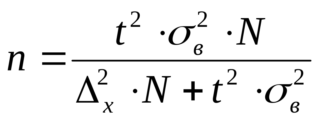 У випадку безповторного відбору необхідна чисельність вибірки розраховується: