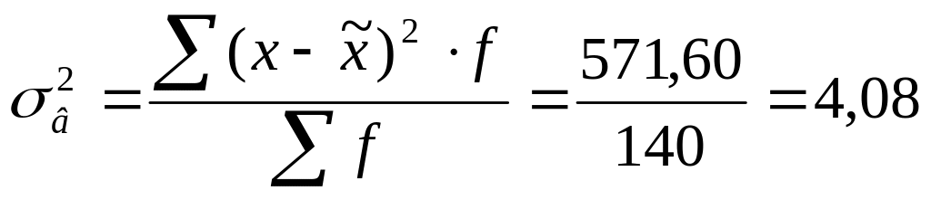 Таблиця 9.3 – Розрахунок вибіркової середньої та вибіркової дисперсії