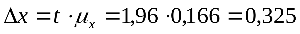 Заданій ймовірності Р=0,950 відповідає коефіцієнт довіри t = l,96. Тоді гранична помилка вибірки складає