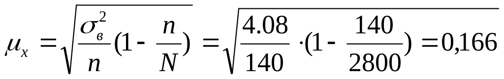 Приклад 1. Визначення помилки вибіркової середньої при випадковому безповторному та механічному виборі.