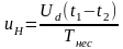 Позначимо час ввімкнутого стану транзисторів VT1, VT2 - t1, а транзисторів VT3, VT4 - t2 (рис. 9а). Тоді значення напруги на навантаженні, усереднене за період несущої частоти, дорівнює