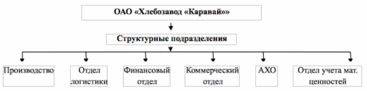 Для того, чтобы предприятие плодотворно функционировало, необходимо правильно сформировать организационную структуру предприятия. В ОАО «Хлебозавод «Каравай»» имеется следующая организационная структура: