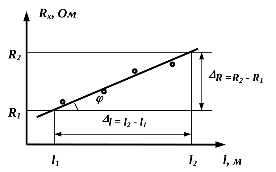 е). По графику определить удельное сопротивление провода, используя свойство уравнения прямой.