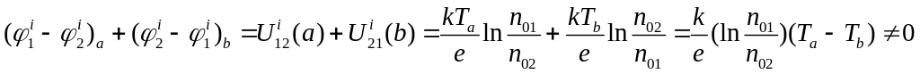 Таким образом, при образовании замкнутой цепи из нескольких металлических проводников с одинаковой температурой спаев невозможно возникновение электродвижущей силы только за счет контактных скачков потенциала.