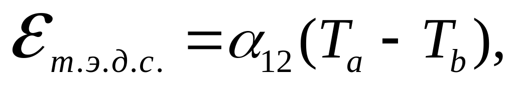 Коэффициент термоэлектродвижущей силы металла 1 по отношению к металлу 2 определяется по формуле: