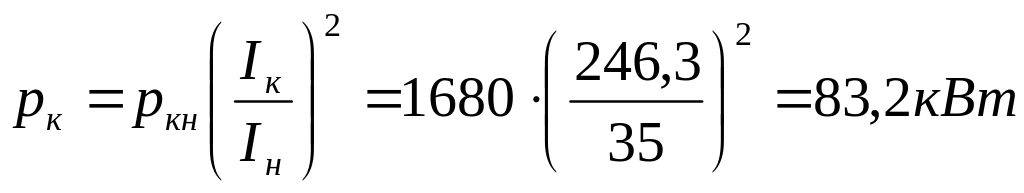 3. Мощность потерь короткого замыкания pк при номинальном подводимом напряжении, полученная перерасчетом по формуле