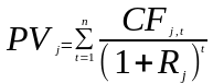 где CFj,t – генерируемый финансовым активом j предполагаемый платеж за период времени t; t=1, …, n – установленный срок размещения финансового актива j, т.е. промежуток времени, в течение которого предполагается получение платежей. |