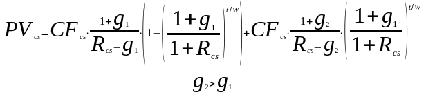 где t – срок до истечения первой стадии дивидендных платежей; g1, g2 – выраженные в долях единицы постоянные темпы прироста дивидендов за предполагаемый период времени. |
