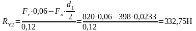 Осевая составляющая радиальных реакций роликовых конических подшипников в точке 2, S2, Н, определяется по формуле