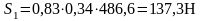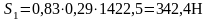 Осевая составляющая радиальных реакций роликовых конических подшипников в точке 1, S1, Н, определяется по формуле