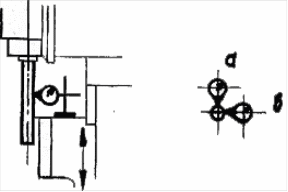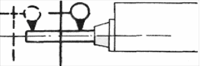 Индикатор крепится к специальному суппорту, скользящему по направляющим хобота. В отверстия шпинделя и серьги вставляются центра. На центра ставится цилиндрическая оправка. Мерительный штифт индикатора касается оправки по образующим: а) в вертикальной, б) в горизонтальной диаметральных плоскостях. Суппорт с индикатором перемещается по направляющим хобота. |