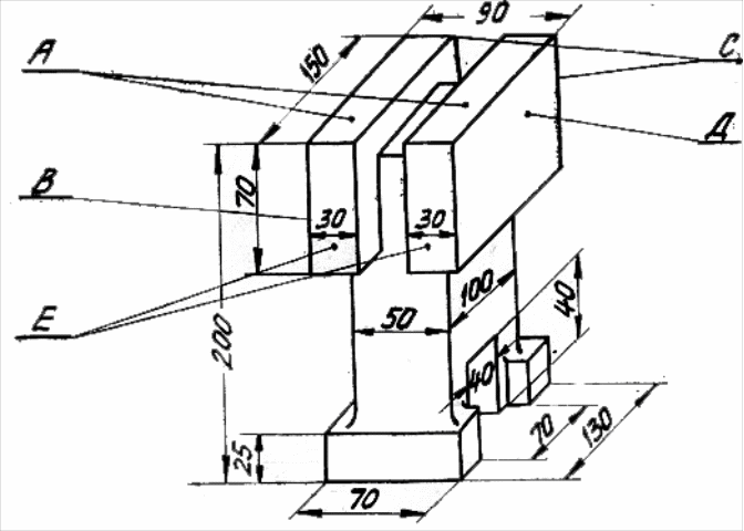 Взаимная перпендикулярность поверхностей а) «В» и «С», б) «С» и «Д», в) «Д» и «А», г) «А» и «Е». |