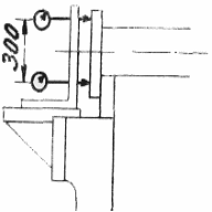 На шпинделе крепится коленчатая оправка с индикатором так, чтобы его измерительный стержень касался боковой поверхности комбинированного сухаря, установленного выступом в паз стола на расстоянии 150 мм от оси шпинделя. Проверка производится на обоих концах стола. Шпиндель с оправкой и индикатором поворачивают, а комбинированный сухарь передвигают в обратную сторону от оси шпинделя на 150 мм и производят второй замер |