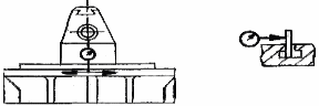 Индикатор укрепляется неподвижно. Мерительный штифт индикатора касается верхней плоскости салазок. Салазки перемещаются по продольным направляющим |