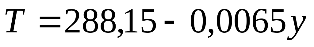 Параметры атмосферы определяются по таблицам и формулам стандартной атмосферы (ГОСТ 4401-81). Для неуправляемых баллистических ракет, высота которых менее десяти километров, можно использовать следующие формулы расчета параметров атмосферы: