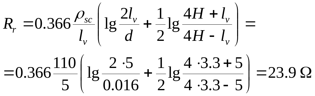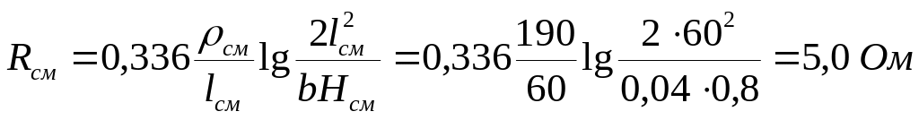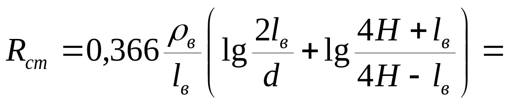Опори розтіканню струму від одиночного вертикального стрижневого заземлювача, Rст, і від сполучної смуги Rсм, розраховують за формулами: