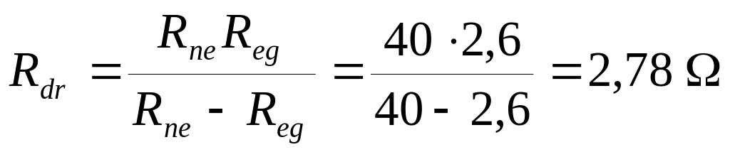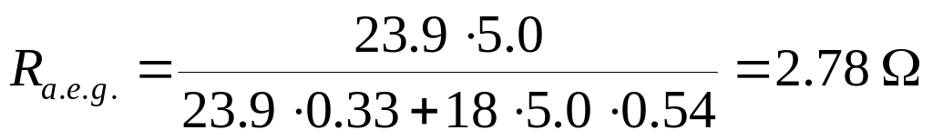 3.4.3.The artificial earthing resistance, Ra, which should be arranged with allowance for the natural Rne = 1.5 Ω and set to norms Rn = 0.5 Ω, is equal to