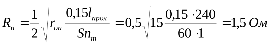 rт = 0,15lпрол / S Ом; lпрол - довжина троса в прольоті між опорами; S - перетин сталевого троса, мм2;