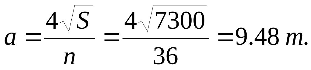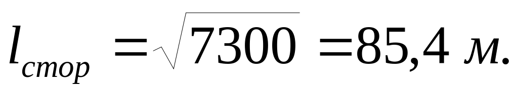 3.4.6.Розрахункова модель контуру заземлення у вигляді квадратної сітки площею S = 7300 м2 буде мати довжину однієї сторони lстор, м