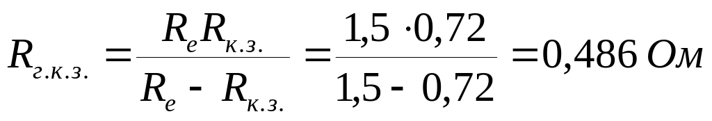 Опір Rг.к.з. = 0,486 Ом менший від Rн = 0,5 Ом, отже, розрахований контур штучного заземлення задовольняє умову задачі.