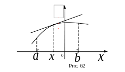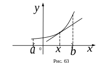 График функции называется выпуклым вниз в интервале , если он расположен ниже касательной, проведенной в любой точке этого интервала (См. рис. 62).