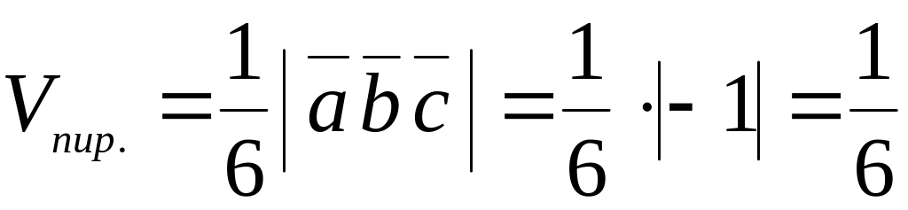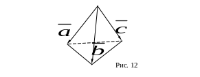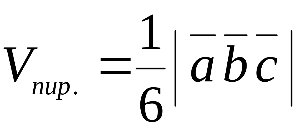Объем треугольной пирамиды, построенной на трех векторах , и (см. рис. 12) вычисляется по формуле: