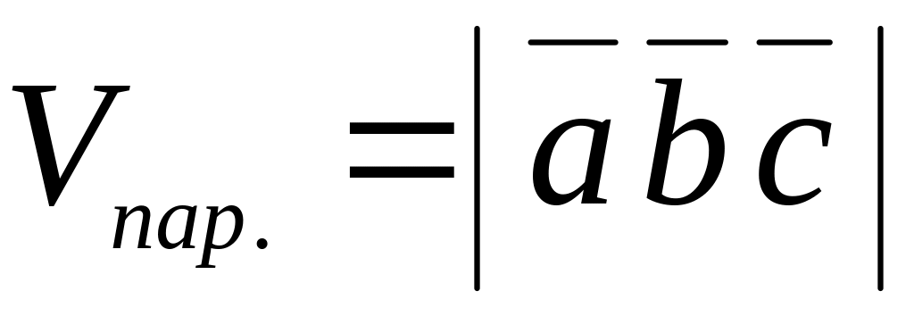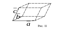 Смешанное произведение трех векторов , и представляет собой число, равное объему параллелепипеда, построенного на этих векторах (см. рис. 11), взятое со знаком «плюс», если эти три вектора образуют правую тройку и со знаком «минус», если они образуют левую тройку векторов.