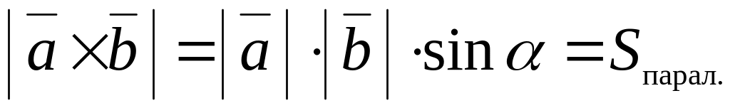 Геометрический смысл векторного произведения состоит в том, что площадь параллелограмма, построенного на векторах и (см. рис. 9) равна модулю векторного произведения векторов и , так как: