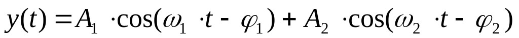 Полигармонический сигнал , A1 = 5, ω1 = 2, φ1 = 1 A1 = 2, ω2 = 3, φ2 = 2 |