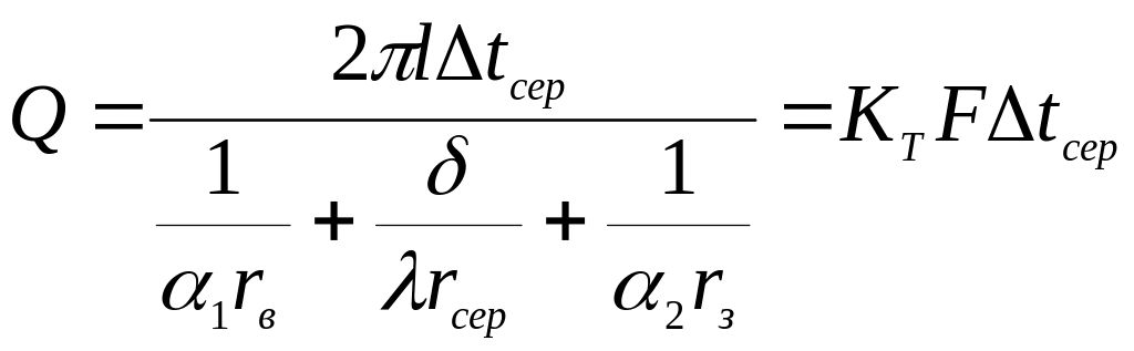 для теплообміну через циліндричну стінку у такій конструкції може бути записане так: