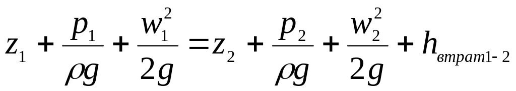 Згідно рівняння Бернуллі, для нашої установки можна записати