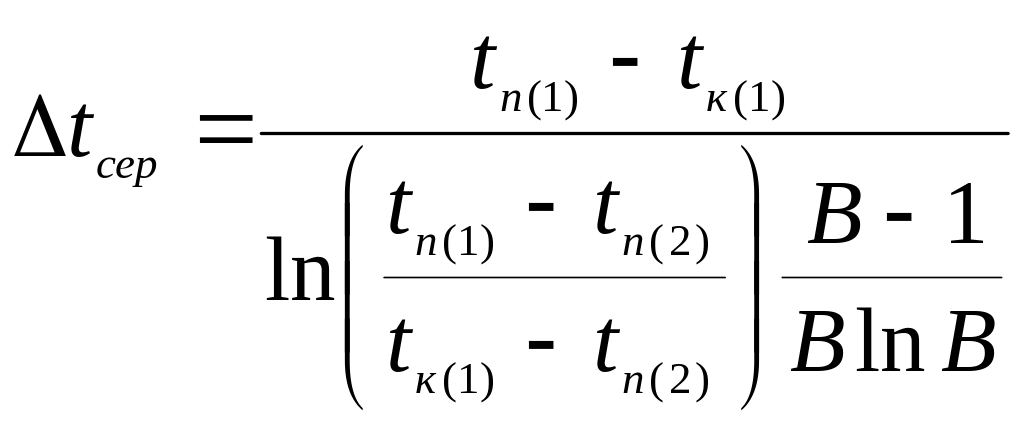 Середня різниця температур (температурний напір) може бути розрахована по формулі