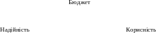 Рис. 2. Схема співвідношення суми бюджету, корисності і надійності результатів