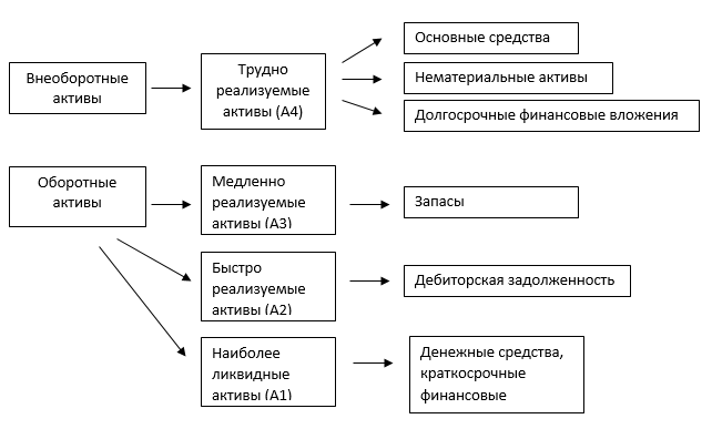 Для проведения ликвидности предприятия по абсолютным показателям статьи актива и пассива баланса группируется по следующим признакам: