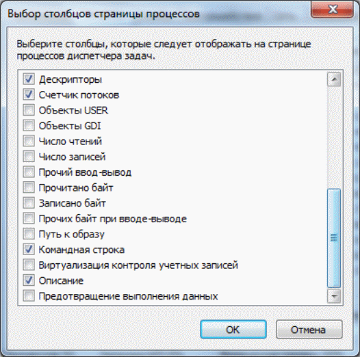 Рис. 1 Представление ресурсов процесса в интерфейсе оператора Windows 7