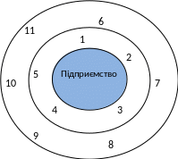 макросередовище: 6 — макроекономіка, 7 — політика и право, 8 — демографія, 9 — культура, 10 — НТП, 11 — екологія.