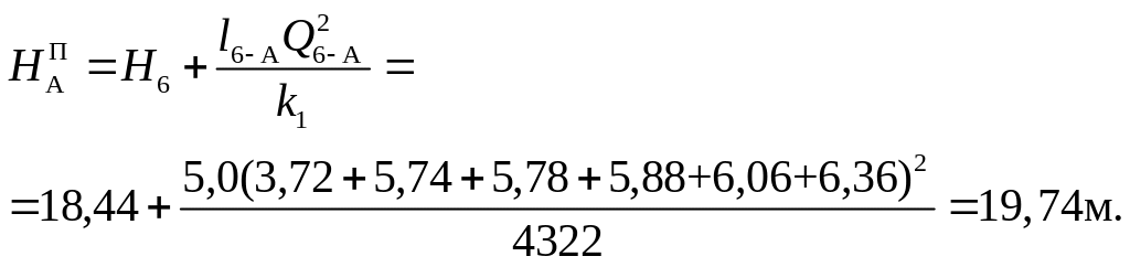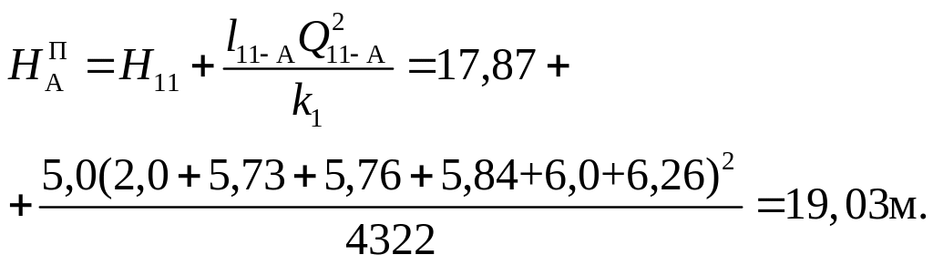 Определяем требуемый напор в т. А для питания левого полукольца:
