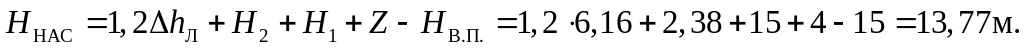 Определяем разность напоров между основным насосом и насосом-дозатором