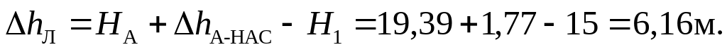 Определяем потери напора по длине трубопровода от т. А до насоса: