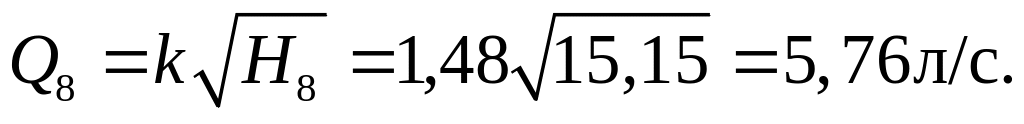 Q1=3,72л/с, H1=15м, Q2=5,74л/с, H2=15,03м, H3=15,23м.
