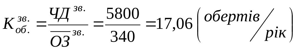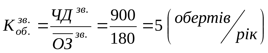 Визначення коефіцієнту оборотності у звітному році: