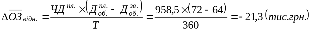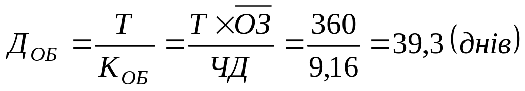 Визначення тривалості обороту у звітному році: