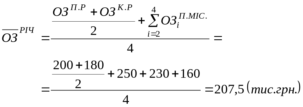 Визначення середнього залишку оборотних засобів: