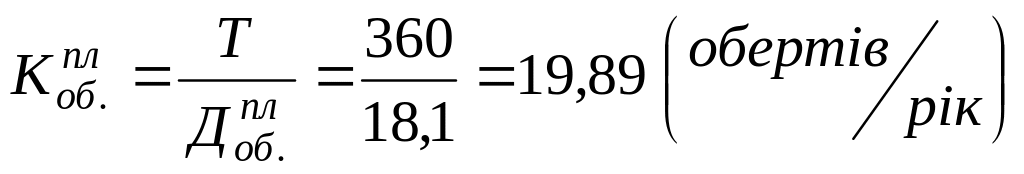 Коефіцієнт оборотності у плановому році: