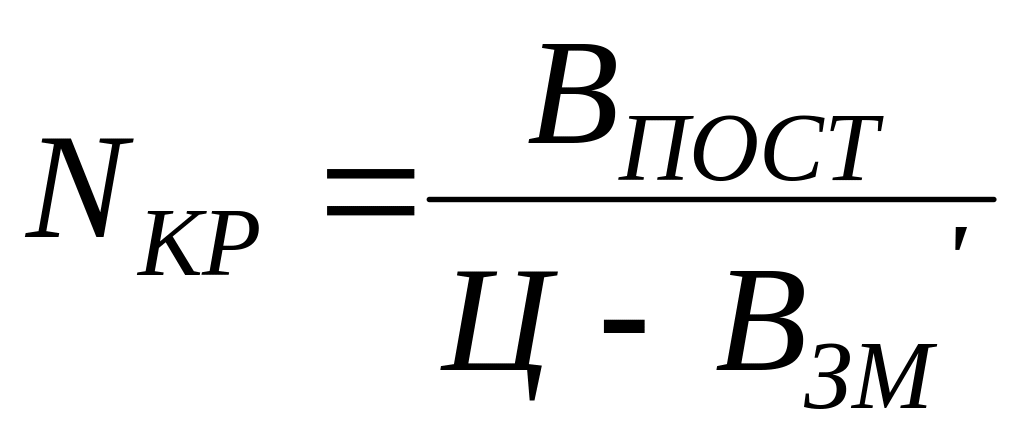 За умови беззбитковості роботи підприємства, тобто коли Пр =0, обсяг виробництва називають критичним обсягом (Nкр), або точкою беззбитковості.