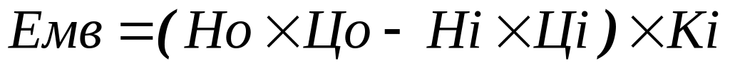Цо, Ці – ціна одиниці сировини, матеріалу до та після здійснення певних