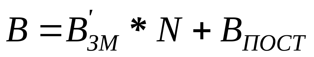 Сукупні (загальні) витрати (В, грн.) можна представити наступним виразом: