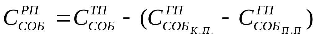 4) Собівартість товарної продукції, (ССОБТП, грн.) – визначається коригуванням собівартості валової продукції на зміну залишків незавершеного виробництва: